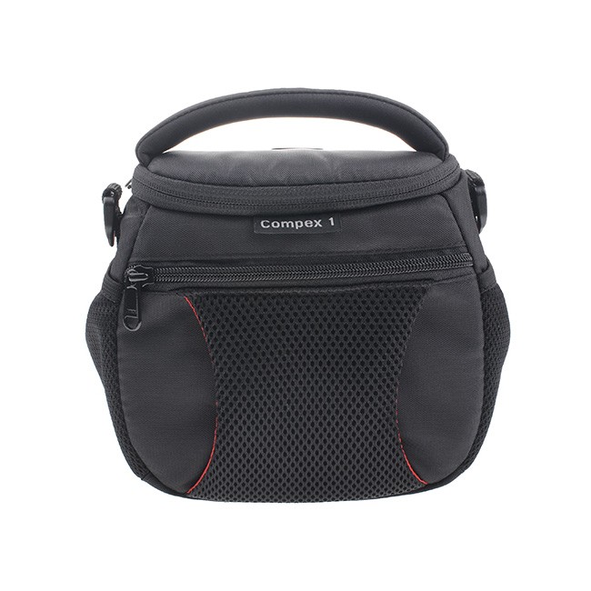 Op de voorkant en achterkant van de tas is er een vak met rits voor kleine accessoires. Aan de buitenkant bevinden zich twee open zijvakken. Aan de binnenkant van het deksel zijn twee kleine vakjes voor een extra geheugenkaart of een schoonmaakdoekje. Dankzij de rood gekleurde voering aan de binnenkant zijn uw spullen in de tas goed zichtbaar en makkelijk te vinden.