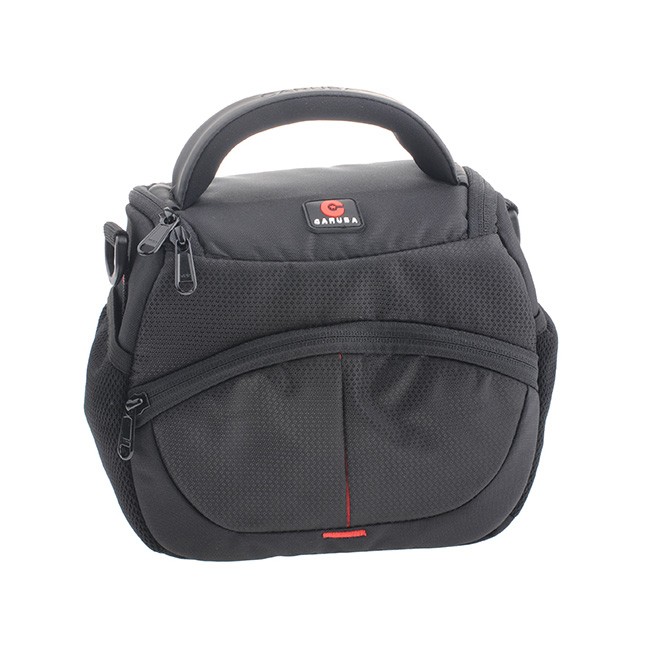 Op de voorkant en achterkant van de tas is er een vak met rits voor kleine accessoires. Aan de buitenkant bevinden zich twee open zijvakken. Aan de binnenkant van het deksel is een opbergvak met rits waarop drie kleine vakjes voor extra geheugenkaarten of een schoonmaakdoekje. Dankzij de rood gekleurde voering aan de binnenkant zijn uw spullen in de tas goed zichtbaar en makkelijk te vinden.