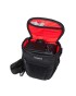 Op de voorkant en op de achterkant van de tas is een vak met rits voor kleine accessoires. Aan de buitenkant bevinden zich twee open zijvakken. Aan de binnenkant van het deksel zijn twee kleine vakjes voor een extra geheugenkaart of een schoonmaakdoekje. Dankzij de rood gekleurde voering aan de binnenkant zijn uw spullen in de tas goed zichtbaar en makkelijk te vinden.