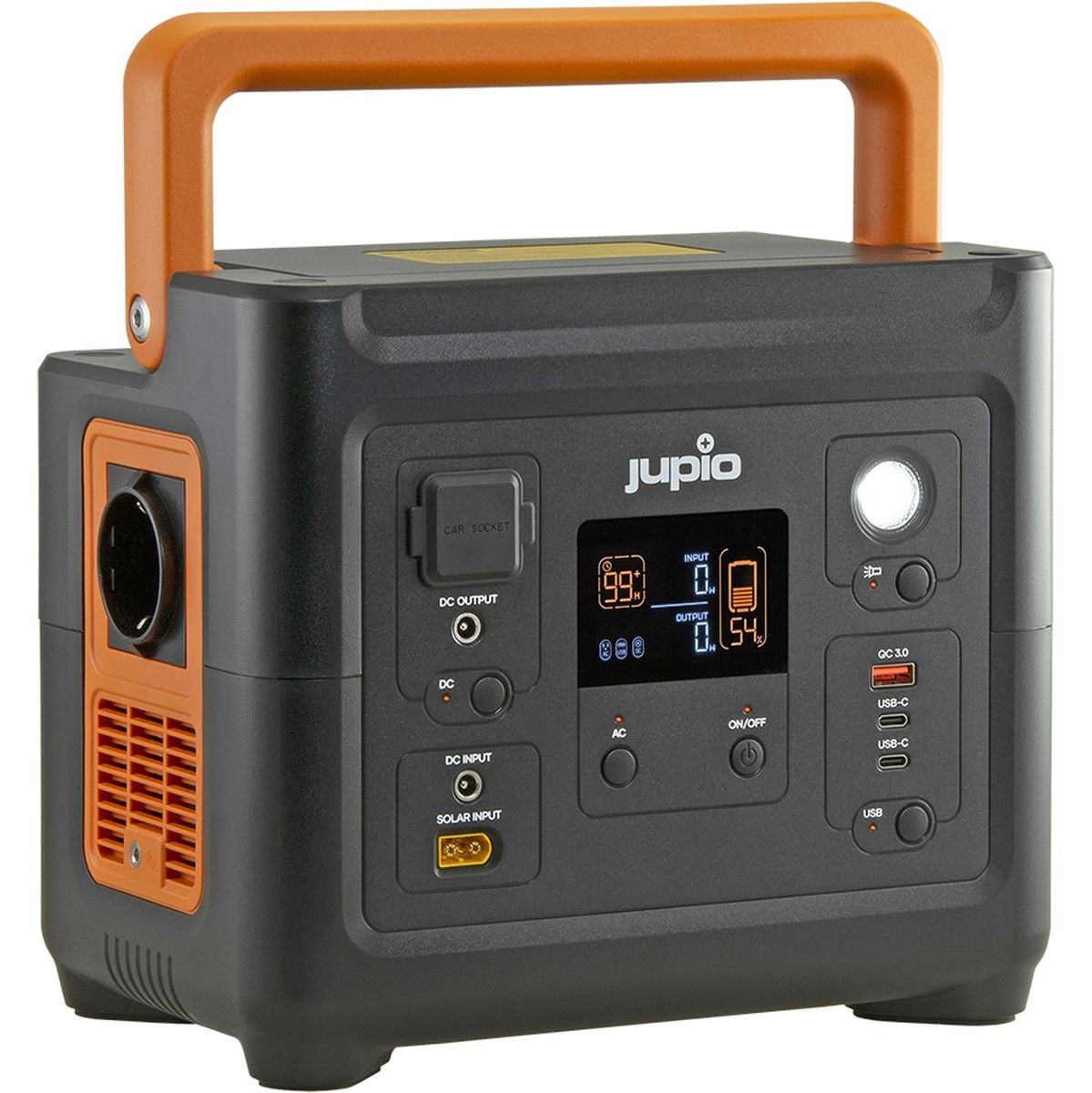 De Jupio PowerBOX500 is de kleinere versie van de PowerBOX1000 en fungeert als een draagbare stroomvoorziening met een capaciteit van 288Wh en een nominaal uitgangsvermogen van 500W (met een piekvermogen van 750W).