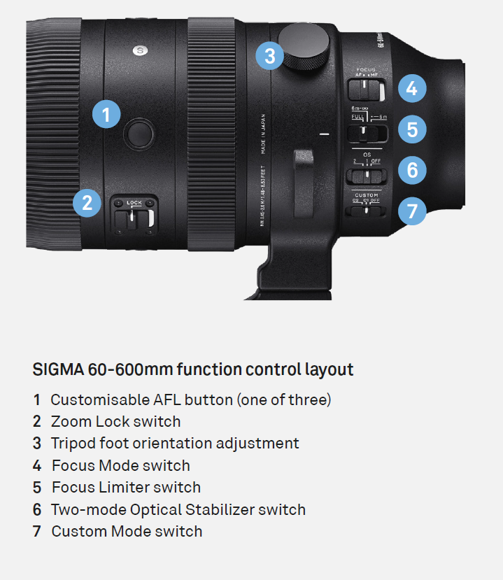 The 60-600mm F4.5-6.3 DG DN OS | Sports is the first Sigma lens to be fitted with the company’s newly developed High-response Linear Actuator motor (HLA). This high-output AF motor with advanced electronic control deliver a very quiet autofocus performance with unparalleled speed and precision.