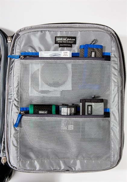 De tas heeft ook twee apart gevoerde vakken voor een tablet en een 15 inch laptop. De Airport Roller Derby rolkoffer heeft vier sets van dual inline-skate stijl wielen die draaien, waardoor de tas gemakkelijk zijwaarts kan rollen. Standaard voorzien van een kabel en een slot voor het vergrendelen van de rits en het bevestigen van de cameratas aan bijvoorbeeld een paal. Een regenhoes is onderdeel van de tas en beschermt je apparatuur bij slecht weer.
